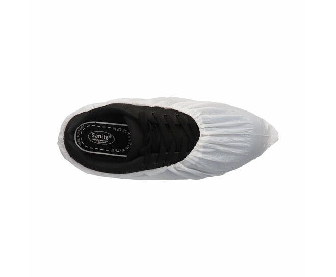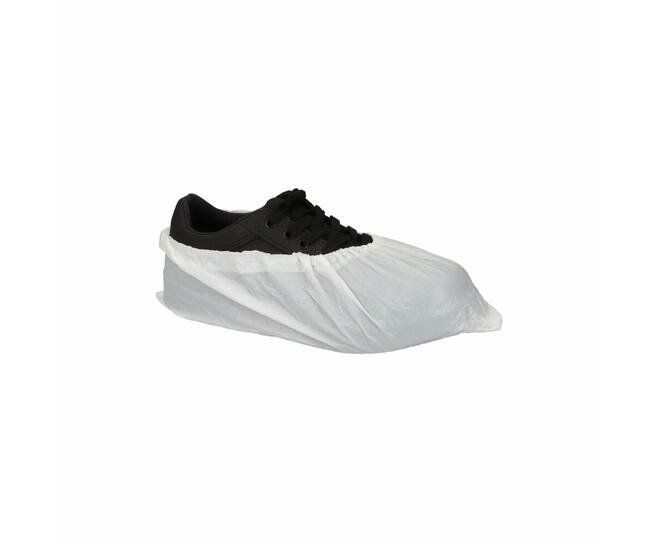 De witte CMT schoenovertrekken zijn gemaakt van versterkt polyethyleen. Het elastiek zorgt ervoor dat de overschoen goed aan je voet blijft zitten. De overschoenen zijn geruwd en waterdicht en zijn dus ideaal voor gebruik in verschillende branches waar men op vochtige werkplekken actief is. De CMT schoenovertrekken zijn extra dik (70 my) en zijn geschikt voor schoenmaat 36-46, afhankelijk van de grootte van de schoenen.